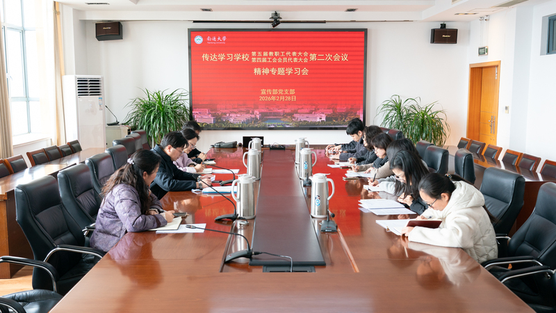 2月28日上午,党委宣传部与党委统战部联合开展专题学习会,深入学习贯彻校第五届教职工代表大会、第四届工会会员代表大会第二次会议精神。校党委常委、宣传部部长、统战部部长朱城主持会议并讲话。朱城领学习近平总书记在二〇二六年春节团拜会上的重要讲话精神、中共中央政治局2月27日召开的重要会议精神,并传达学校“两代会”精神,结合校党委书记杨宇民在大会上的讲话以及校长王建浦作的工作报告,对2026年的工作重点进行解读。围绕贯彻落实会议精神,朱城提出三点要求。一要筑牢思想根基,把学习贯彻校“两代会”精神与学习习近平新时代中国特色社会主义思想结合起来,深刻把握学校的发展定位。二要聚焦中心工作,将工作部署细化为