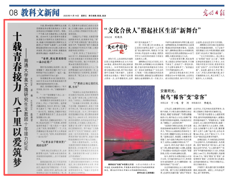 《光明日报》关注我校莫文隋研究生支教团十年接力支教事迹