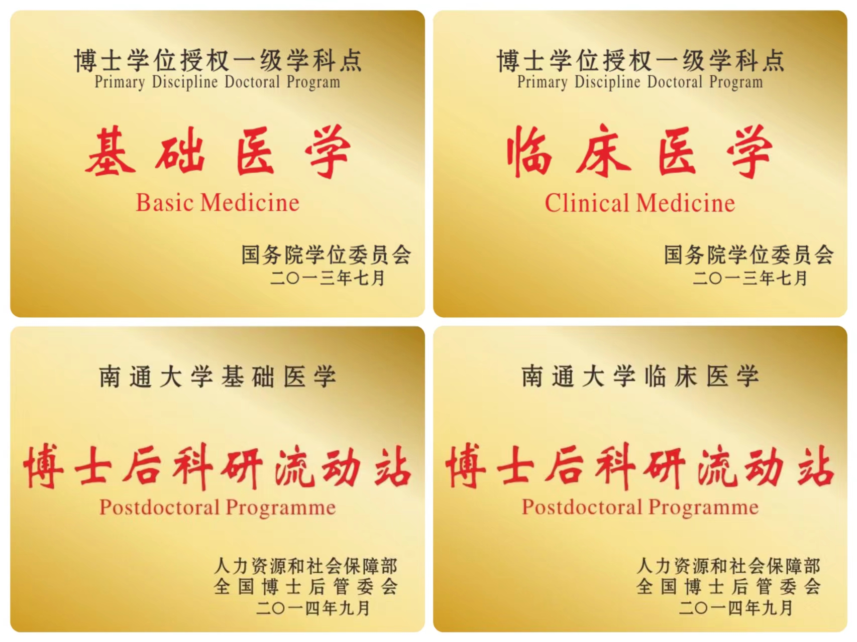 学院现有国家重点学科培育建设点1个、江苏省高校优势学科1个、江苏省一级学科重点学科2个、“十四五”江苏省A类重点学科1个、一级学科博士学位授权点2个、一级学科硕士学位授权点4个,博士后科研流动站2个。目前,通大医学院临床医学学科排名进入全球前2‰,神经科学与行为学、药理学与毒理学、生物学与生物化学学科等学科进入ESI学科全球排名前1%。学院已被列入教育部“卓越医生教育培养计划”试点单位。