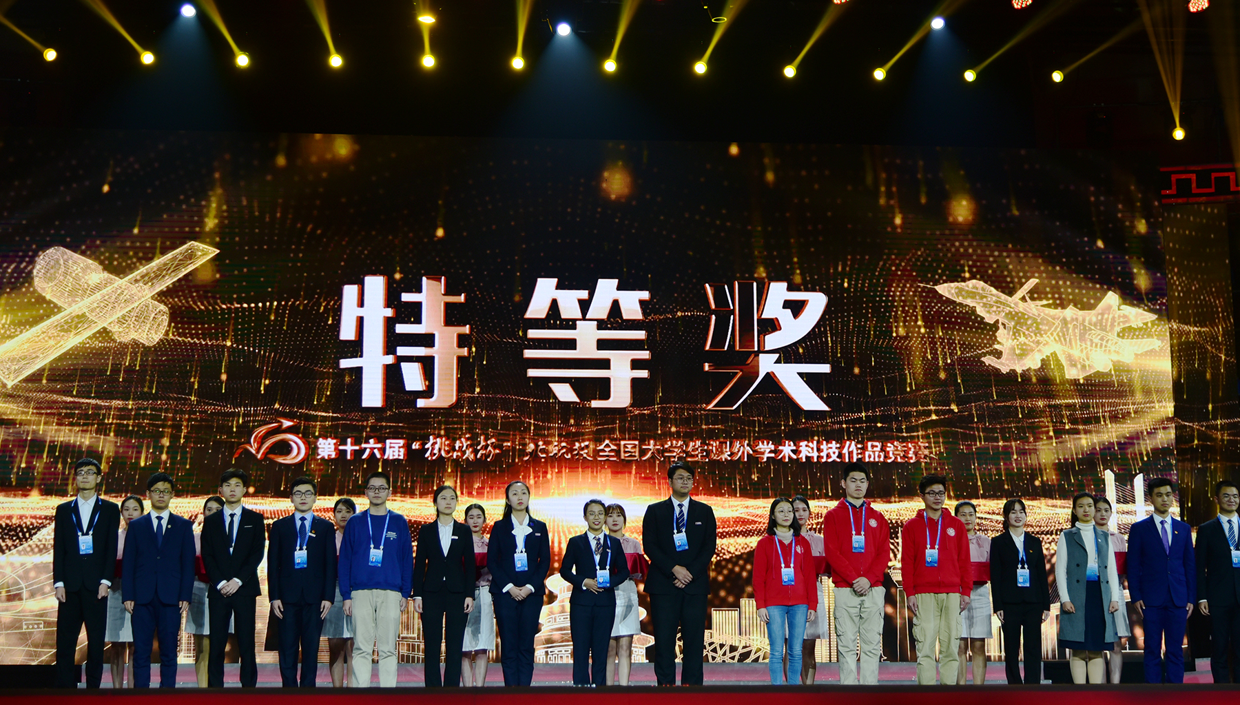 医学院学子(左四)获挑战杯全国大学生课外学术科技作品竞赛特等奖颁奖现场