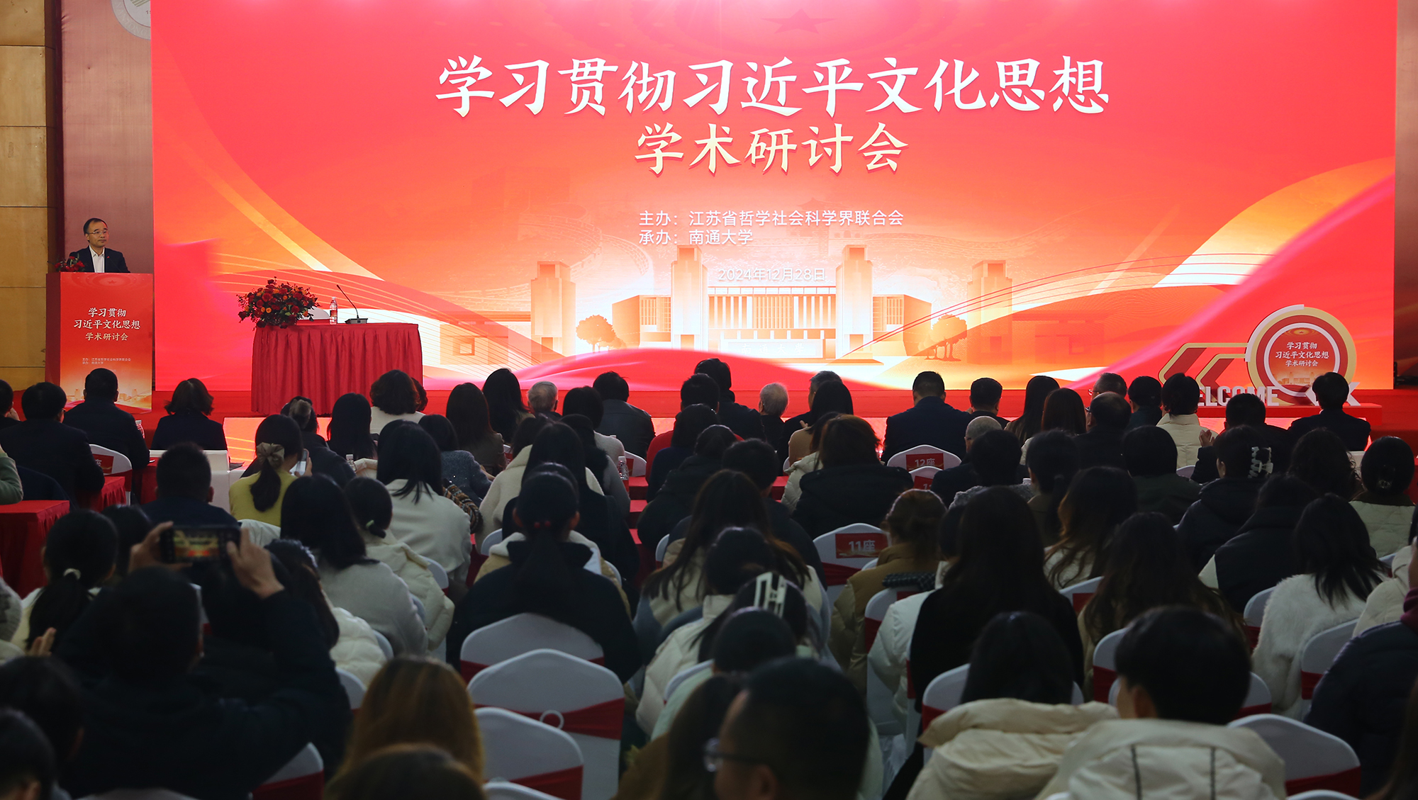 12月28日下午,“学习贯彻习近平文化思想”学术研讨会在我校召开。江苏省社科联党组书记、常务副主席张新科在会上讲话。南京大学人文社会科学资深教授、央视百家讲坛著名主讲人莫砺锋,国医大师、中国中医科学院学部委员王新陆,南京大学中华文化研究院院长赖永海,江苏省作家协会名誉主席、著名作家范小青,中国工程院院士、东南大学城市设计研究所所长王建国等5名文化大咖受邀作主旨报告。群众杂志社社长、总编辑周斌,江苏省社科联党组成员、秘书长、二级巡视员程彩霞,江苏工程职业技术学院党委书记秦志林,江苏工程职业技术学院党委副书记、院长张忠,江苏省社科联学会部主任鱼雪萍等出席研讨会。校党委常委、副校长陆俊杰主持研讨会。