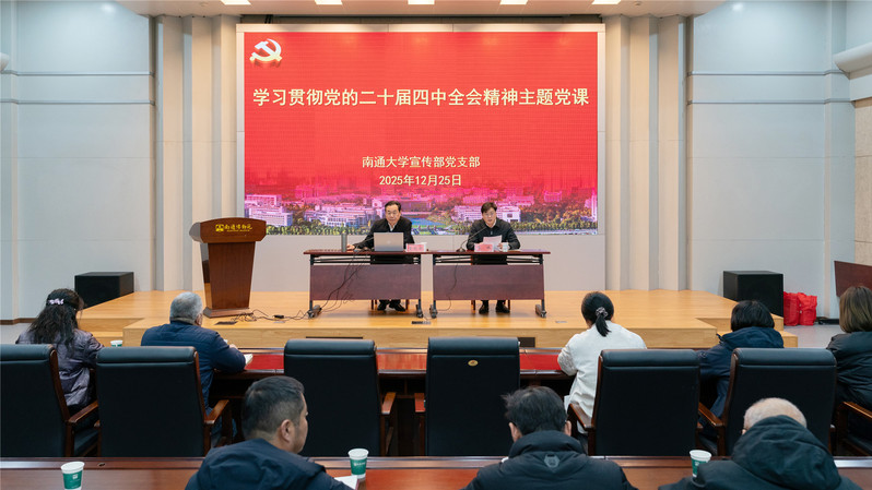 12月25日,宣传部党支部全体党员前往南通博物苑,开展“凝心铸魂学思想 聚力奋进‘十五五’”深入学习贯彻党的二十届四中全会精神主题党日活动,校党委常委、副校长吉明明以普通党员身份参加支部活动,并讲授专题党课。校党委常委、党委宣传部部长、统战部部长、保卫部部长朱城主持。吉明明以《深入学习贯彻党的二十届四中全会精神 奋力开创中国式现代化建设新局面》为题,给全体党员上了一堂站位高远、内涵丰富、催人奋进的精彩党课。他紧紧围绕习近平总书记在党的二十届四中全会上的重要讲话和《中共中央关于制定国民经济和社会发展第十五个五年规划的建议》,从全面了解党的二十届四中全会基本情况和《建议》起草过程,准确把握“十五五