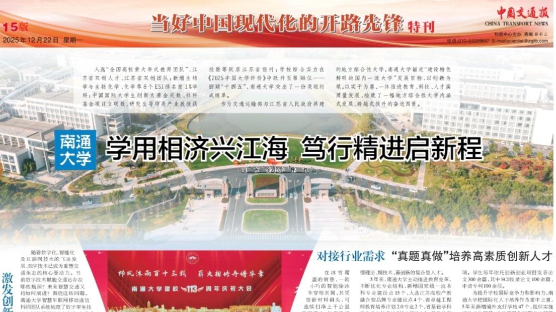 《中国交通报》整版报道我校“十四五”时期高质量发展成果